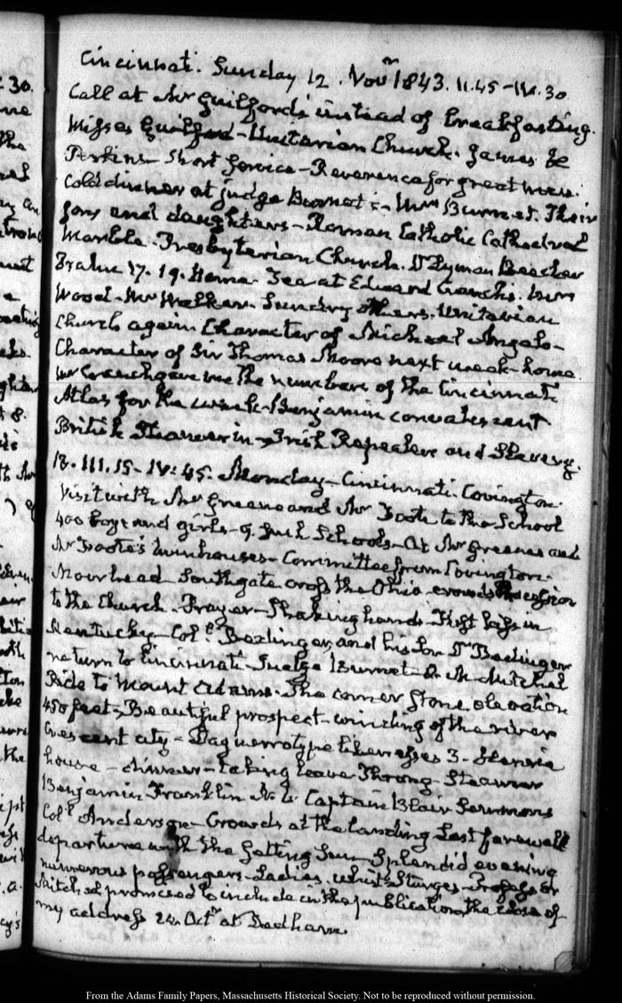 View full, authoritative transcriptions with page images of the diaries at John Quincy Adams Digital Diary part of the Primary Source Cooperative at the MHS.