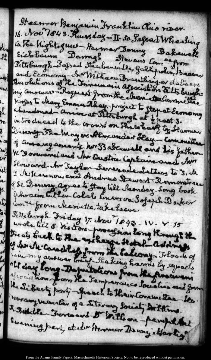 View full, authoritative transcriptions with page images of the diaries at John Quincy Adams Digital Diary part of the Primary Source Cooperative at the MHS.