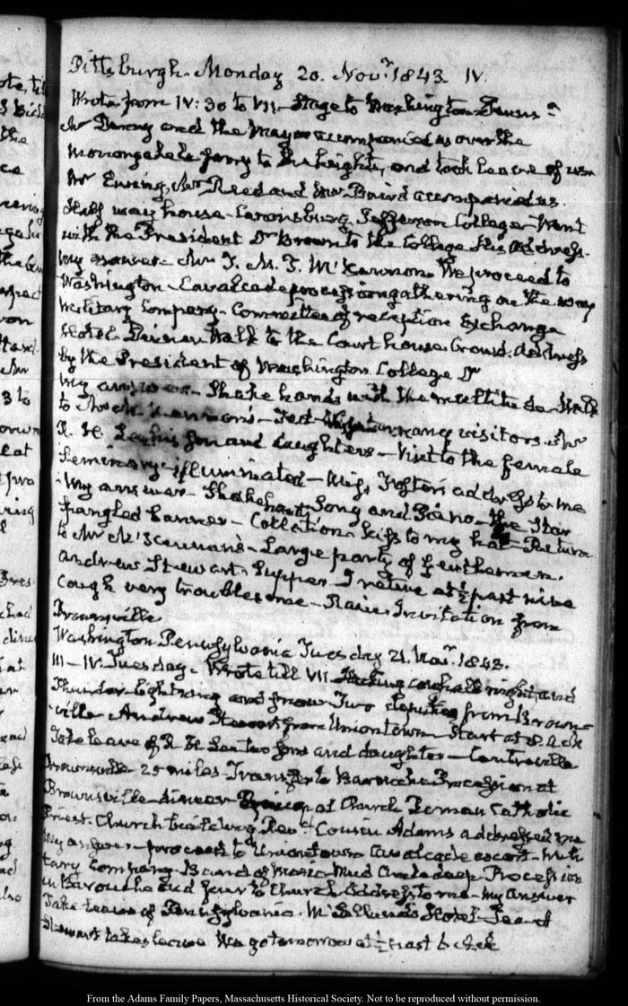 View full, authoritative transcriptions with page images of the diaries at John Quincy Adams Digital Diary part of the Primary Source Cooperative at the MHS.