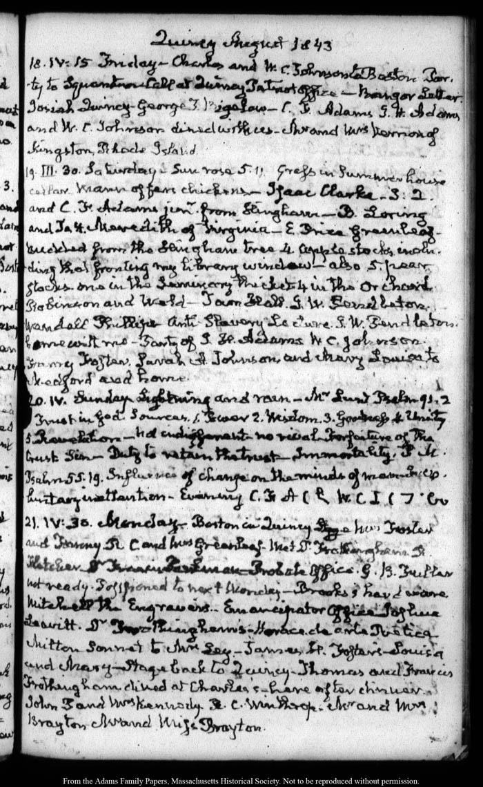 This is our legacy JQA diaries website and allows researchers to view the physical diaries page-by-page.