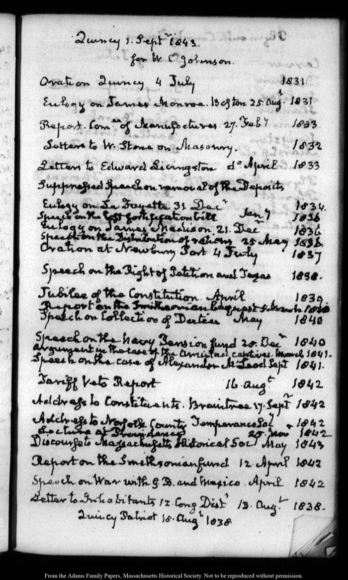 View full, authoritative transcriptions with page images of the diaries at John Quincy Adams Digital Diary part of the Primary Source Cooperative at the MHS.