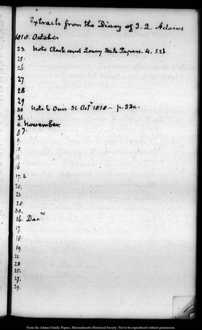View full, authoritative transcriptions with page images of the diaries at John Quincy Adams Digital Diary part of the Primary Source Cooperative at the MHS.