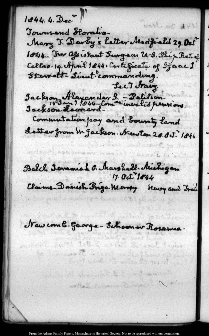 View full, authoritative transcriptions with page images of the diaries at John Quincy Adams Digital Diary part of the Primary Source Cooperative at the MHS.