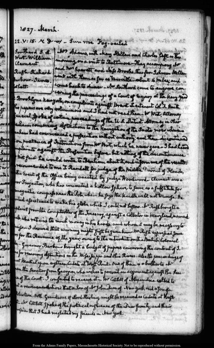 View full, authoritative transcriptions with page images of the diaries at John Quincy Adams Digital Diary part of the Primary Source Cooperative at the MHS.