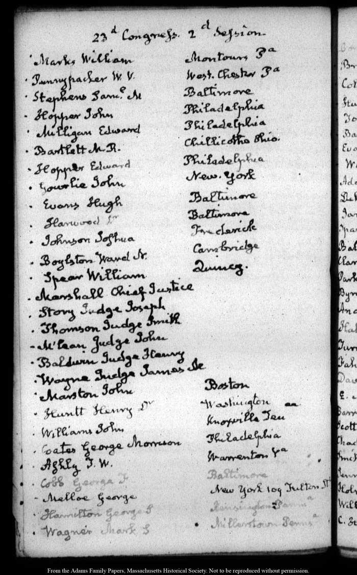 View full, authoritative transcriptions with page images of the diaries at John Quincy Adams Digital Diary part of the Primary Source Cooperative at the MHS.