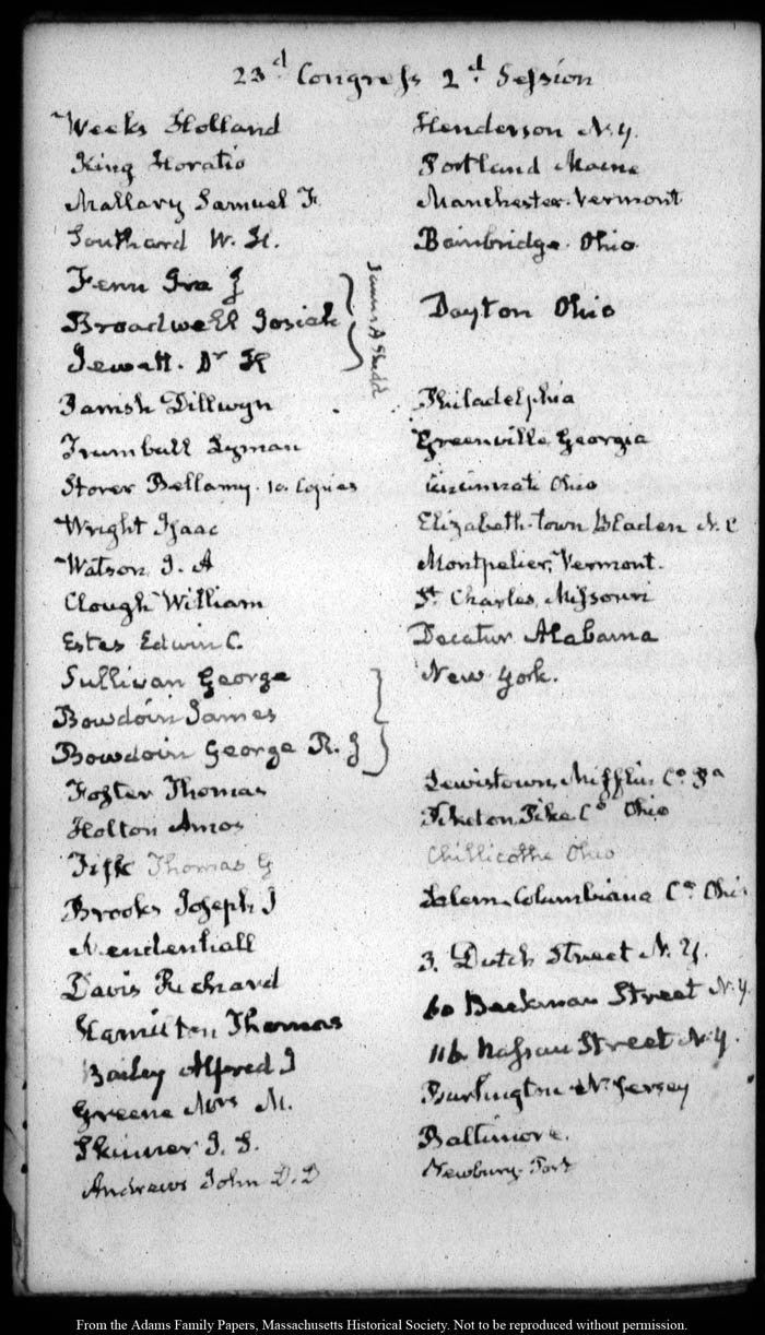 View full, authoritative transcriptions with page images of the diaries at John Quincy Adams Digital Diary part of the Primary Source Cooperative at the MHS.