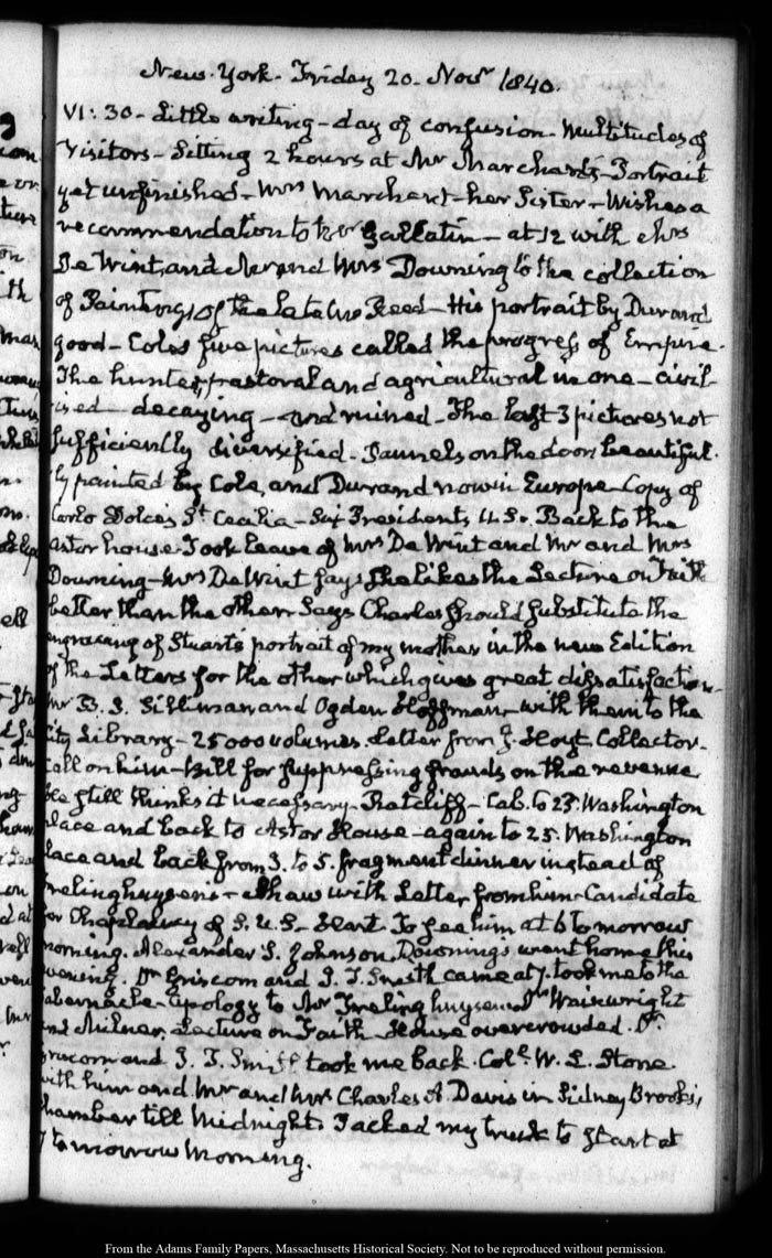 View full, authoritative transcriptions with page images of the diaries at John Quincy Adams Digital Diary part of the Primary Source Cooperative at the MHS.