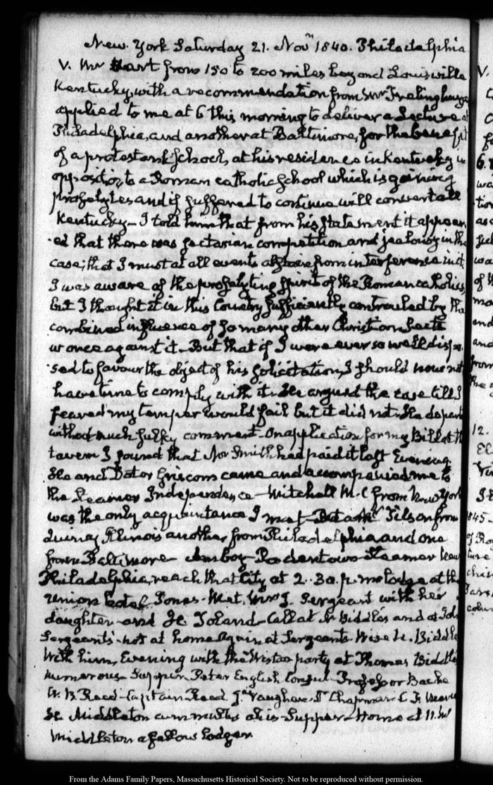 View full, authoritative transcriptions with page images of the diaries at John Quincy Adams Digital Diary part of the Primary Source Cooperative at the MHS.