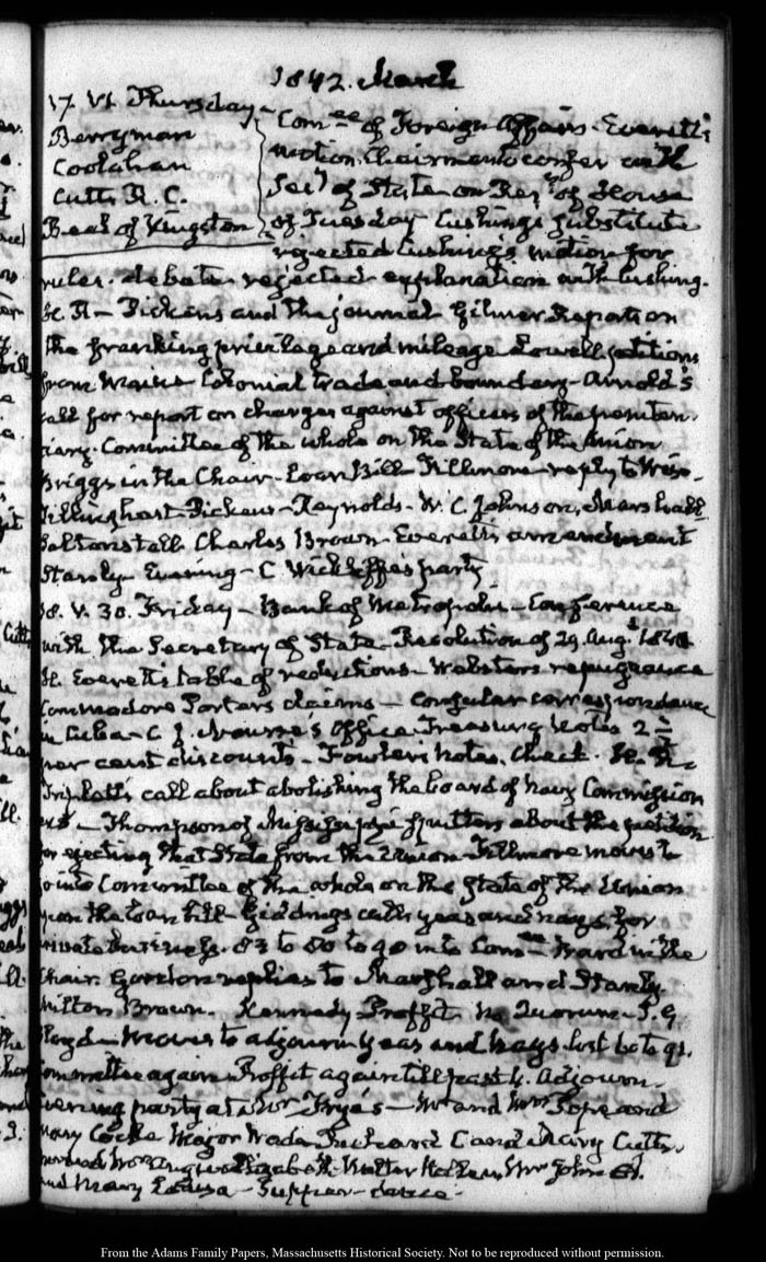 View full, authoritative transcriptions with page images of the diaries at John Quincy Adams Digital Diary part of the Primary Source Cooperative at the MHS.