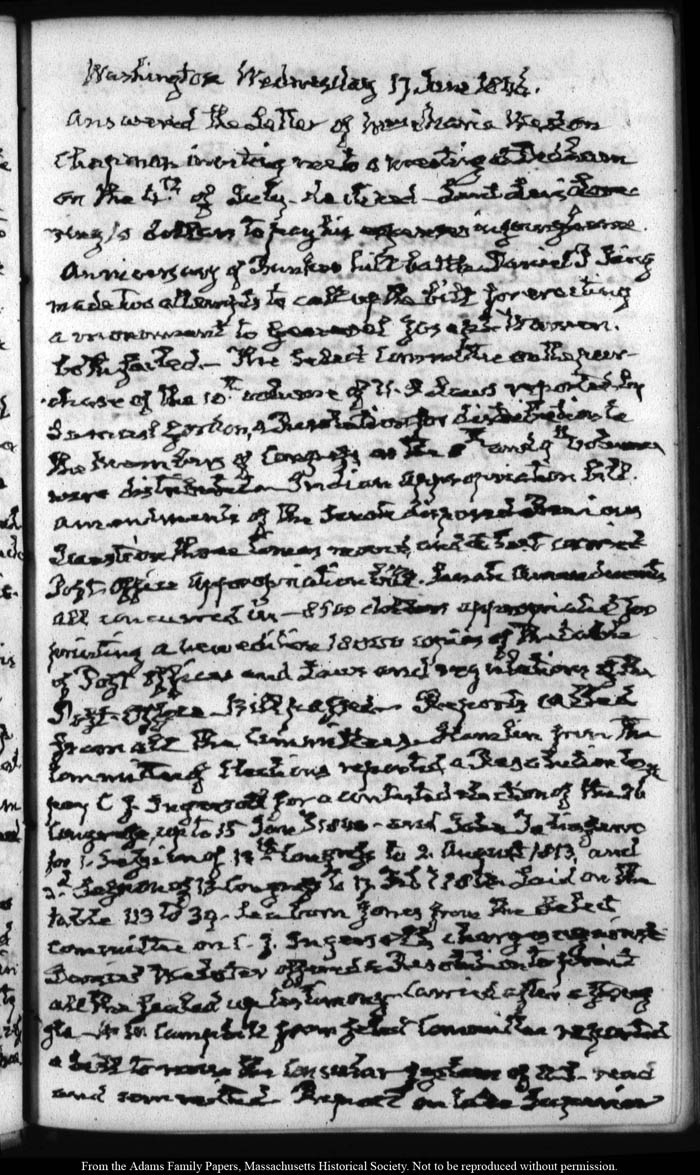 View full, authoritative transcriptions with page images of the diaries at John Quincy Adams Digital Diary part of the Primary Source Cooperative at the MHS.