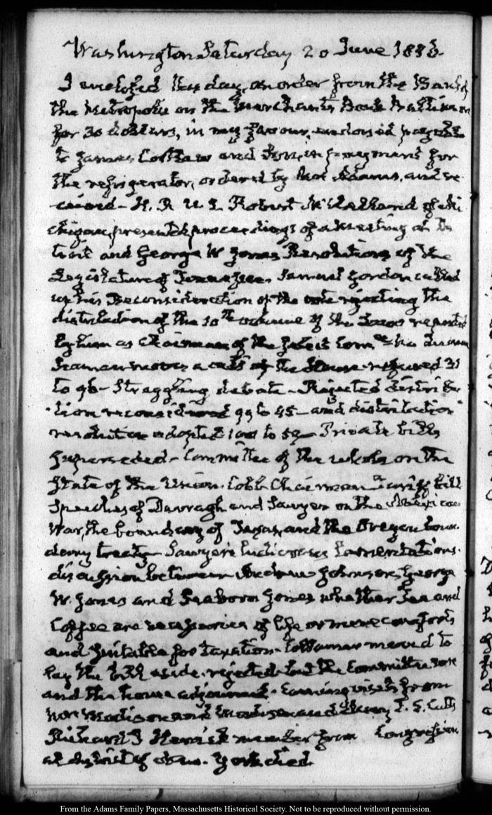 View full, authoritative transcriptions with page images of the diaries at John Quincy Adams Digital Diary part of the Primary Source Cooperative at the MHS.