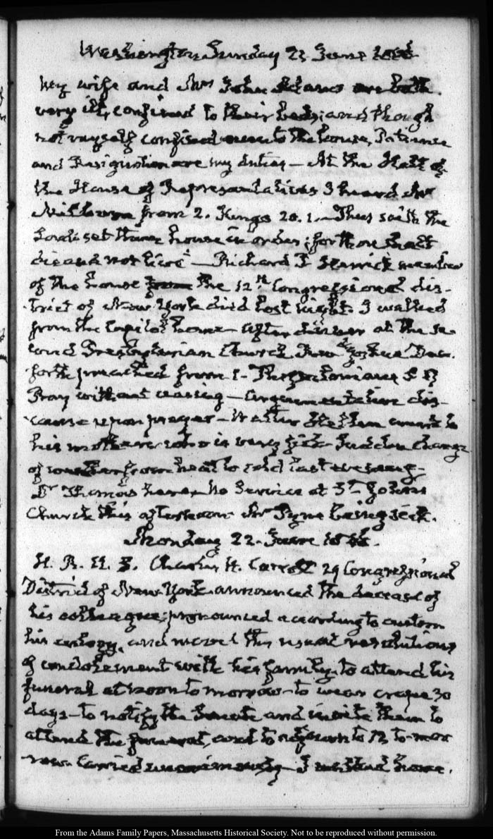 View full, authoritative transcriptions with page images of the diaries at John Quincy Adams Digital Diary part of the Primary Source Cooperative at the MHS.