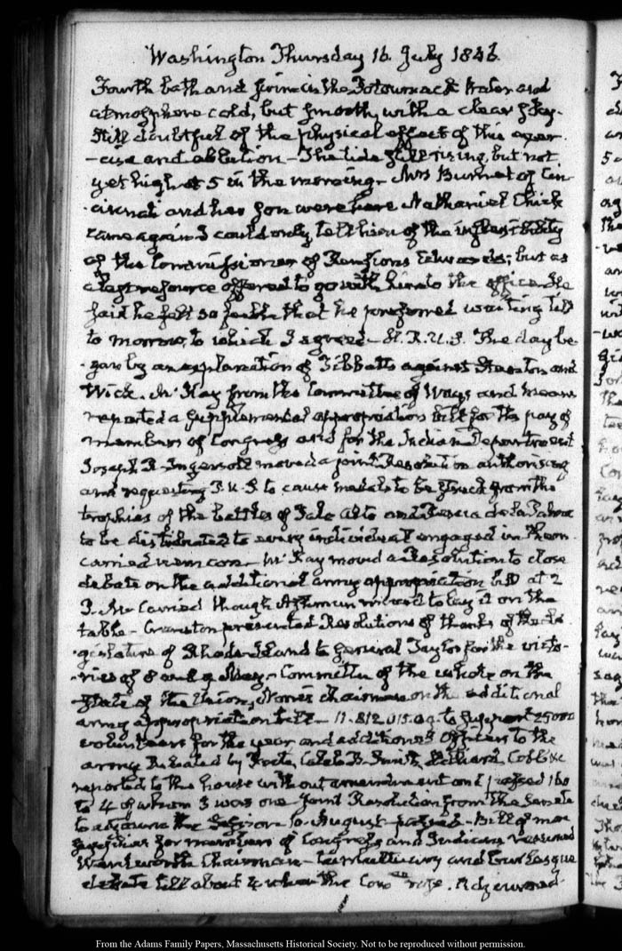 View full, authoritative transcriptions with page images of the diaries at John Quincy Adams Digital Diary part of the Primary Source Cooperative at the MHS.