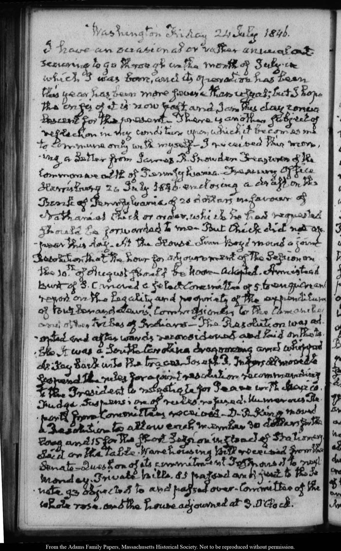 View full, authoritative transcriptions with page images of the diaries at John Quincy Adams Digital Diary part of the Primary Source Cooperative at the MHS.