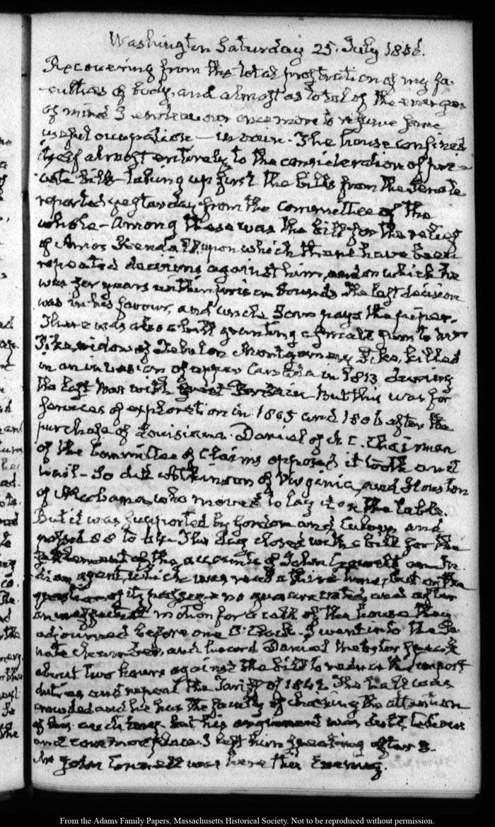 View full, authoritative transcriptions with page images of the diaries at John Quincy Adams Digital Diary part of the Primary Source Cooperative at the MHS.