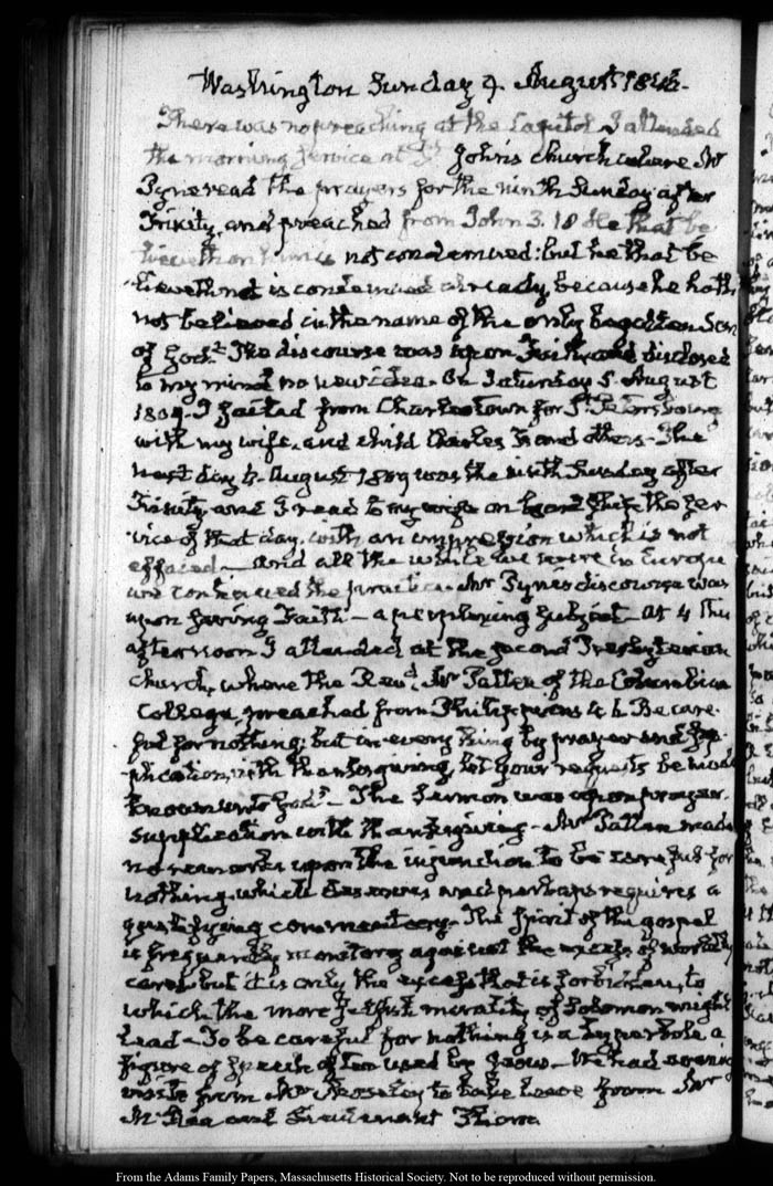 View full, authoritative transcriptions with page images of the diaries at John Quincy Adams Digital Diary part of the Primary Source Cooperative at the MHS.