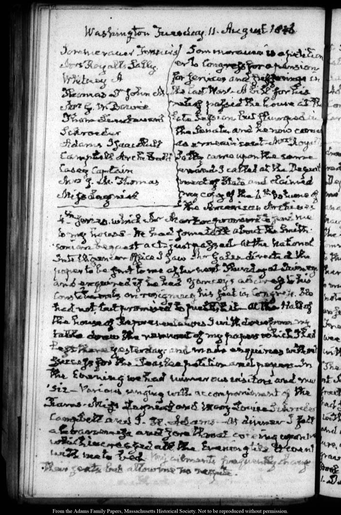 View full, authoritative transcriptions with page images of the diaries at John Quincy Adams Digital Diary part of the Primary Source Cooperative at the MHS.