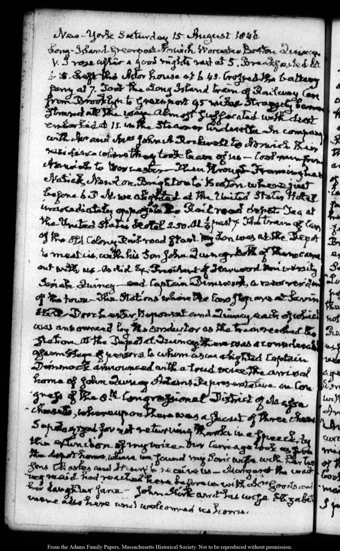View full, authoritative transcriptions with page images of the diaries at John Quincy Adams Digital Diary part of the Primary Source Cooperative at the MHS.