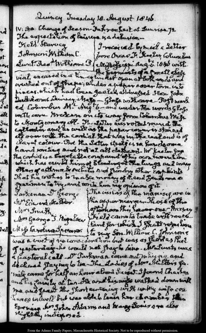 View full, authoritative transcriptions with page images of the diaries at John Quincy Adams Digital Diary part of the Primary Source Cooperative at the MHS.