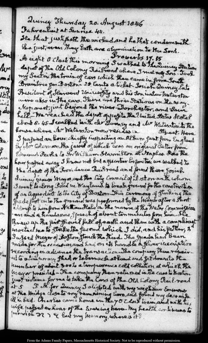 View full, authoritative transcriptions with page images of the diaries at John Quincy Adams Digital Diary part of the Primary Source Cooperative at the MHS.