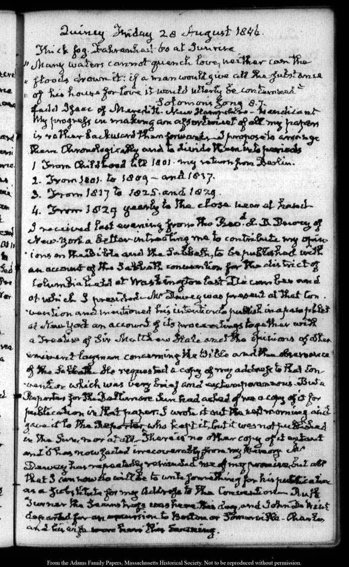 View full, authoritative transcriptions with page images of the diaries at John Quincy Adams Digital Diary part of the Primary Source Cooperative at the MHS.