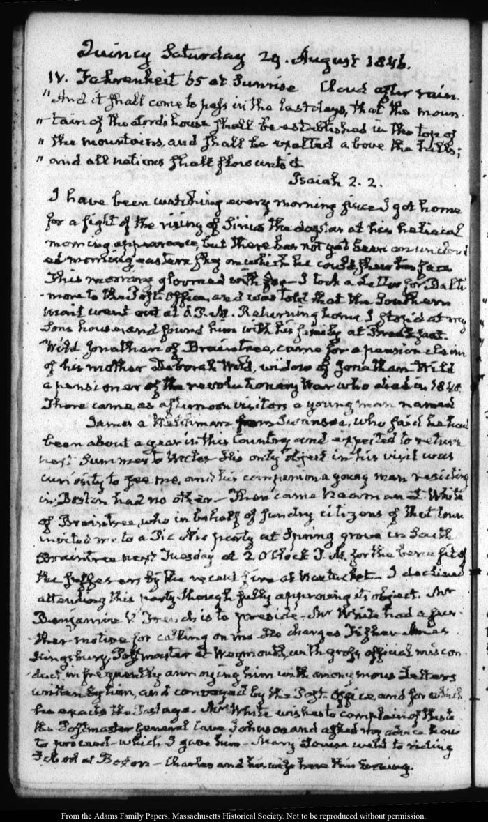 This is our legacy JQA diaries website and allows researchers to view the physical diaries page-by-page.