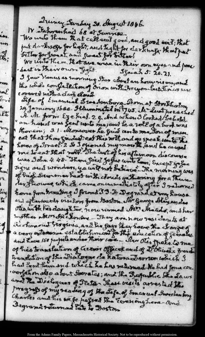 View full, authoritative transcriptions with page images of the diaries at John Quincy Adams Digital Diary part of the Primary Source Cooperative at the MHS.