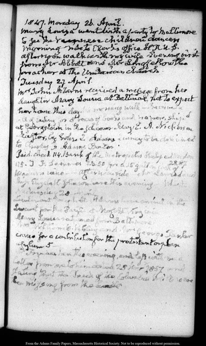 View full, authoritative transcriptions with page images of the diaries at John Quincy Adams Digital Diary part of the Primary Source Cooperative at the MHS.
