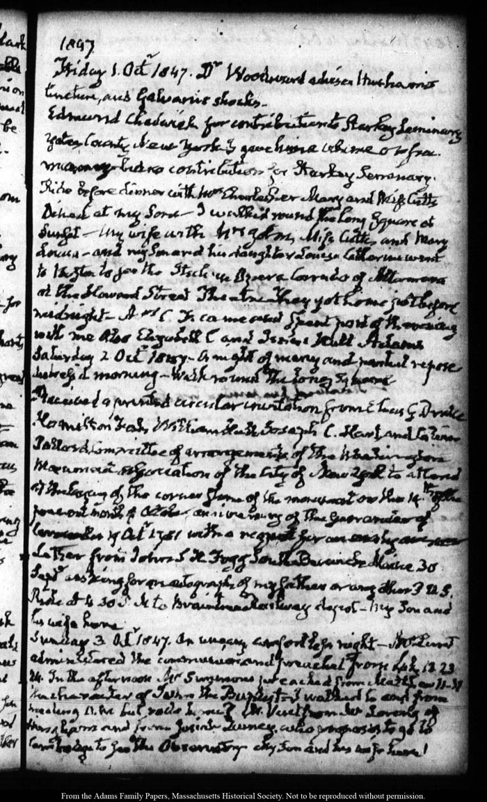 View full, authoritative transcriptions with page images of the diaries at John Quincy Adams Digital Diary part of the Primary Source Cooperative at the MHS.