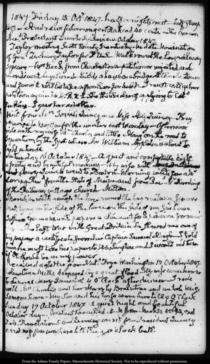 View full, authoritative transcriptions with page images of the diaries at John Quincy Adams Digital Diary part of the Primary Source Cooperative at the MHS.