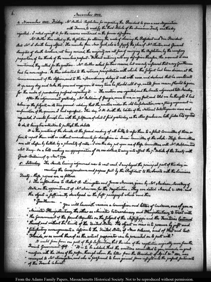 John Quincy Adams diary 51, 3 February 1803 - 14 November 1803, page 6 [within Charles Francis Adams miscellany volume 15, "Book of Possessions"]