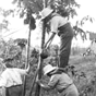 Robert M. Grey, Mr. Brooks, and Thomas Barbour gathering papayas at the Harvard Botanical Garden, Soledad, Cuba