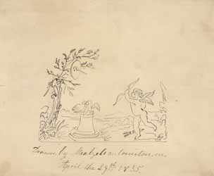 Among the artwork in the Minot family papers is a drawing of Cupid practicing archery. Dated 29 April 1835, it would be entirely unremarkable if rendered by a human hand. Amazingly, it was drawn by an automaton machine, a clockwork boy capable of tracing out various pictures and poems. At the time, this automaton was known as Maelzel's Juvenile Artist.