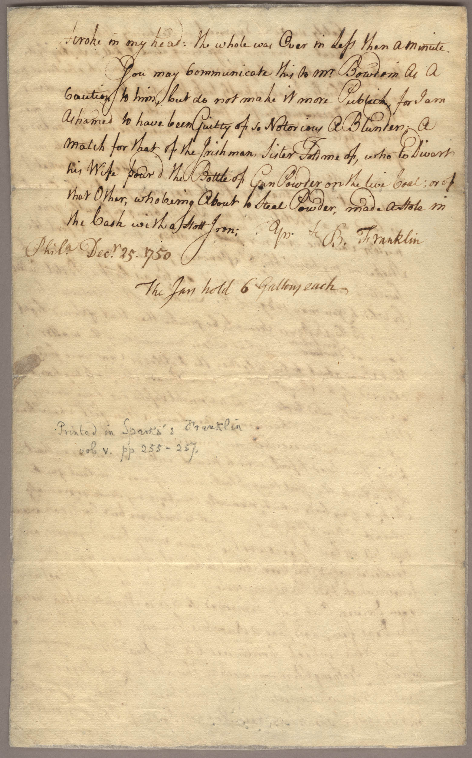 I was about) Say that the flash was very great and the crack as loud as a Pistol; yet my Senses being instantly