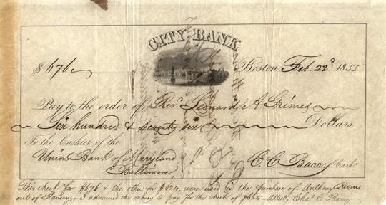 used for the purchase of the freedom of Anthony Burns, 1855.