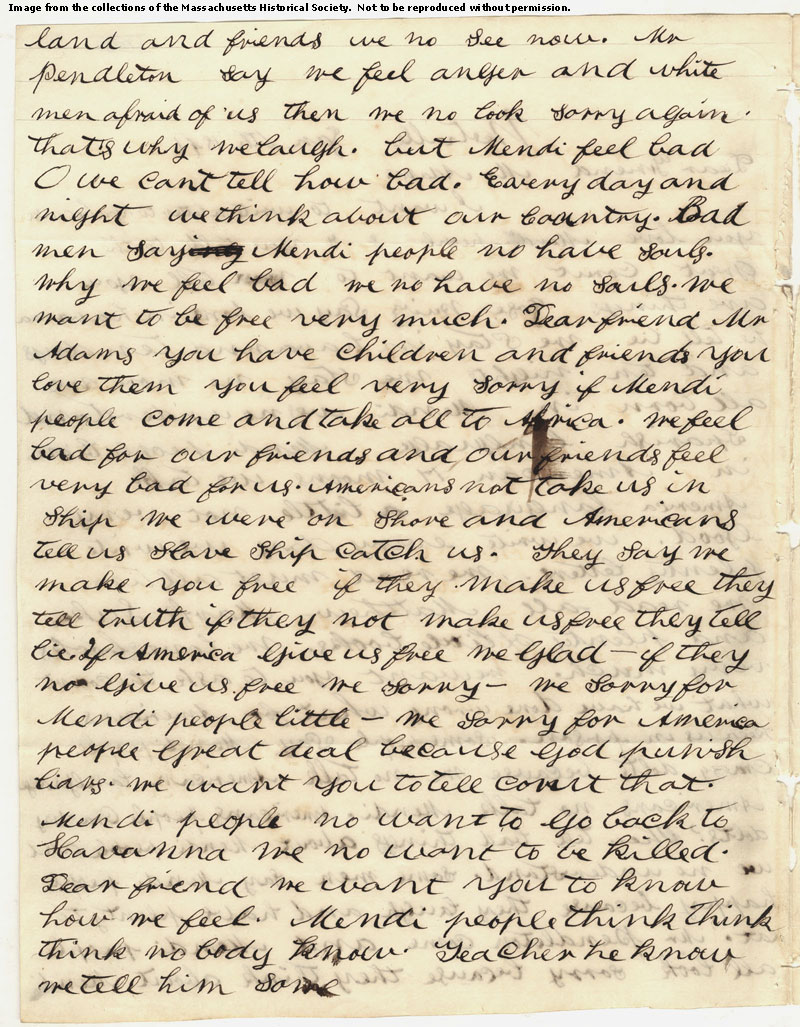 if Mendi people come and take all to Africa. We feel bad for our friends, and our friends all