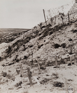 View of a dozen artillery dugouts built into a hillside