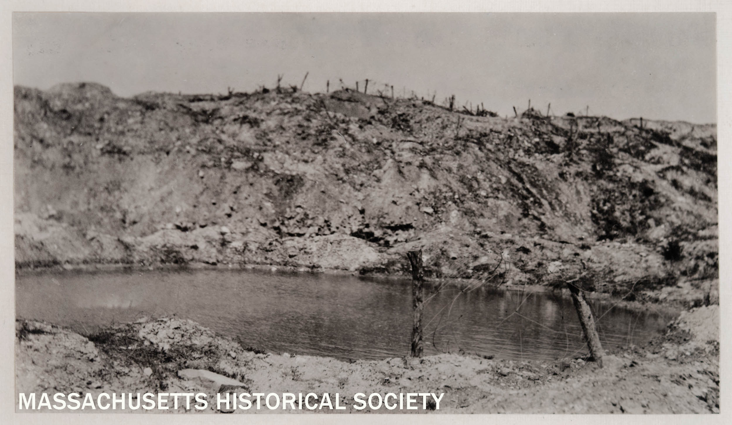 From Letters and Photographs from the Battle Country, typescript narrative by Margaret Hall Photograph facing page 148; Sequence number 199a Caption below photograph: "Shell hole."