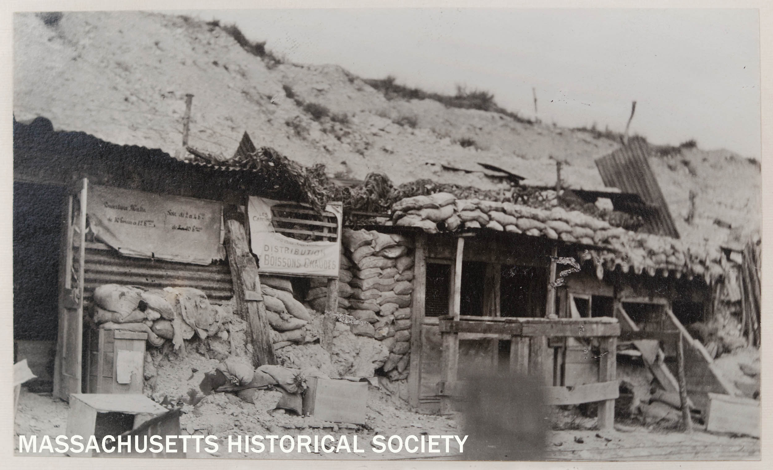 Caption below photograph: "American Red Cross 'cantine' among dug outs--on opp. page." [See 2875 and 2876]