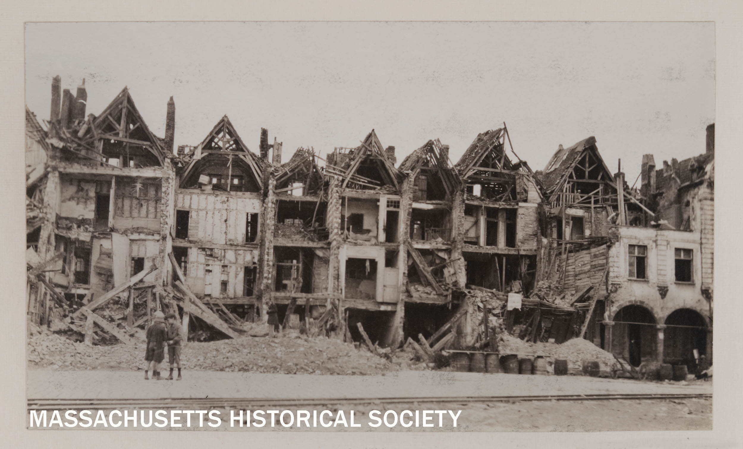 Caption below photograph: "Armentières. (narrow gauge r.r. in street)"