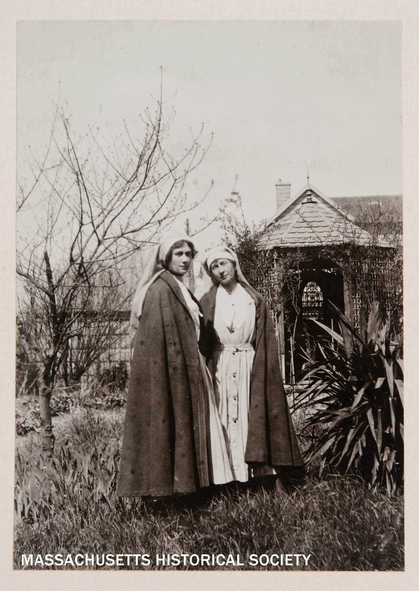 From Letters and Photographs from the Battle Country, typescript narrative by Margaret Hall Photograph facing page 38; Sequence number 42b Caption below photograph: "Miss Mitchell in her garden"