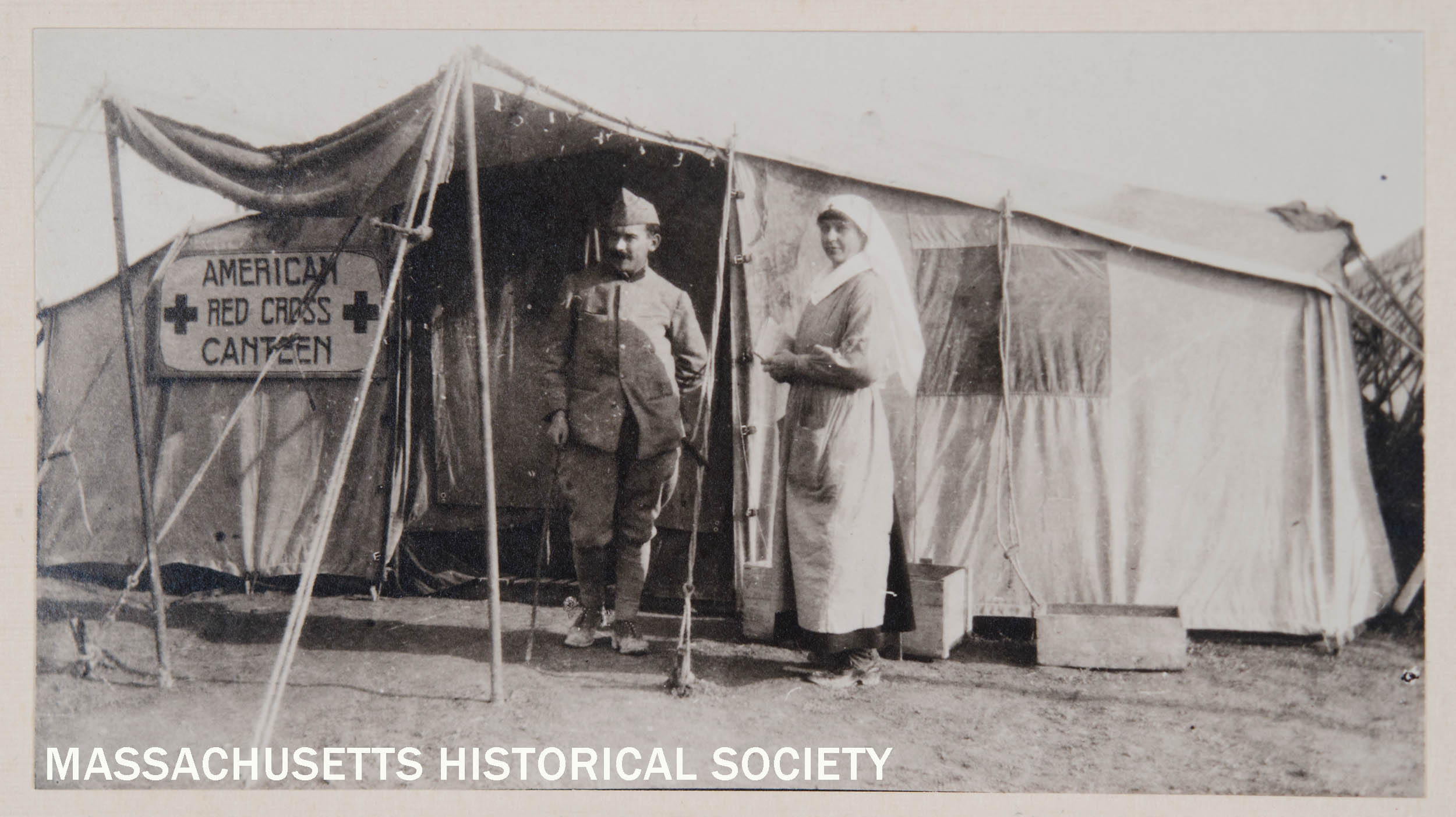 Caption below photograph: "M. H. at Ecury Oct. 13. 1918. French Ambulance No. 5."
