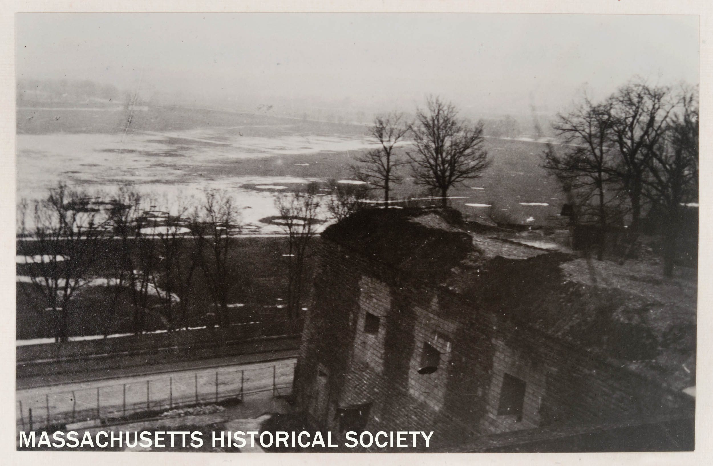 Caption below photograph: "Shell holes--from top of fortifications--"