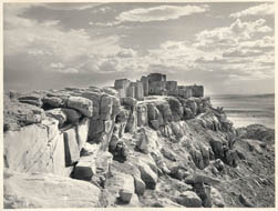 The platinotypes exhibited here have been selected from the Kingsmill Marrs photographs, a collection held by the Massachusetts Historical Society. Marrs, a Boston collector, amateur photographer, traveler, and writer, most likely bought the albums from Vroman at his bookshop in Pasadena in 1901 or 1902. These photographs were taken by Adam Clark Vroman and are housed in two bound albums and are accompanied by a typescript list of all of the photographs they contain, possibly typed by Vroman or Marrs. Most of the titles listed here for each photograph have been reproduced from that list. Other titles have been derived from published captions in books about Vroman's photography by Ruth Mahood and William Webb (see the bibliography, "Sources for Further Research"). Each photograph is also captioned with Vroman’s original negative number.