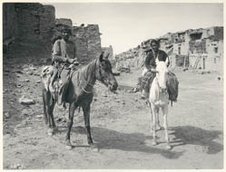 Between 1895 and 1904, Adam Clark Vroman photographed the landscape and native peoples of the American Southwest. His photographs of the Hopis, Zunis, and Pueblos, among other tribes, have been praised for their relatively objective eye; as photographic historian Beaumont Newhall wrote in his introduction to Ruth Mahood’s book, Photographer of the Southwest: Adam Clark Vroman, "[he] avoided the sentimental, the contrived, and the obvious. He photographed simply, directly, and sympathetically." Indeed, as the photographs within this web presentation convey, his portraits of Native Americans humanize, rather than romanticize, his subjects. Shown here are a selection of platinotype prints by Adam Clark Vroman in the MHS photograph collection. The platinotype, or platinum print, is known for its non-reflective surface, rich detail, broad tonal range and permanence. The platinum process was patented in England in 1873 and was widely used in the United States and Europe from 1880 through the 1930s, when the cost of platinum became prohibitive and the silver-based processes gained prominence.
