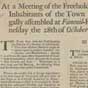 Bostonians meet in Faneuil Hall the next October to consider a petition brought by fellow townsmen. It addresses a key issue raised by the Act—"the excessive use of foreign superfluities"—and the extent to which this has increased the colonists' reliance on and subjugation to Britain.