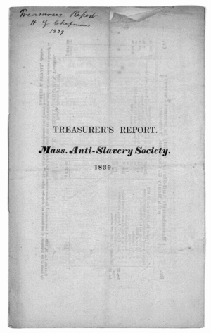 - What is a Treasurer's Report? Who is the Treasurer of the Massachusetts Anti-Slavery Society, and what is his role? Who audits the report, and what does an auditor do? (Hint: this works the same way today as it did in 1839!)