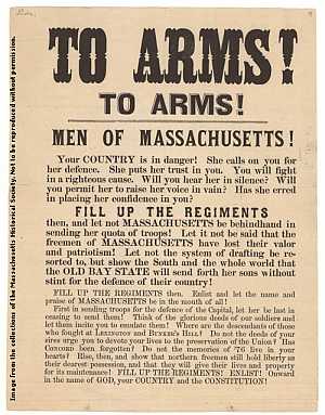In 1862, the Union is in need of troops. Initial war fever has diminished, and initial expectations have collided with the realities of war. Broadsides and songs are two different tools used to recruit soldiers.
