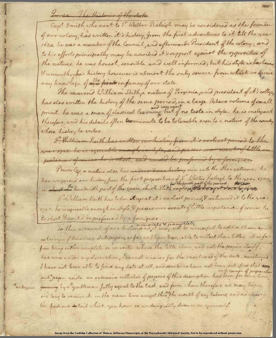 Manuscript page 105, "Capt. Smith who next to Sr. Walter Raleigh..." (Query 23)