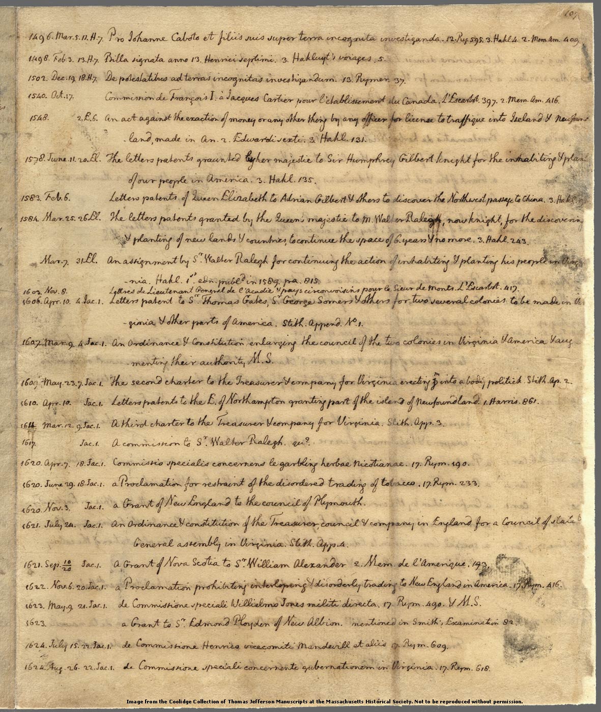Manuscript page 107, " Pro Johanne Caboto et filiis..." (Query 23)